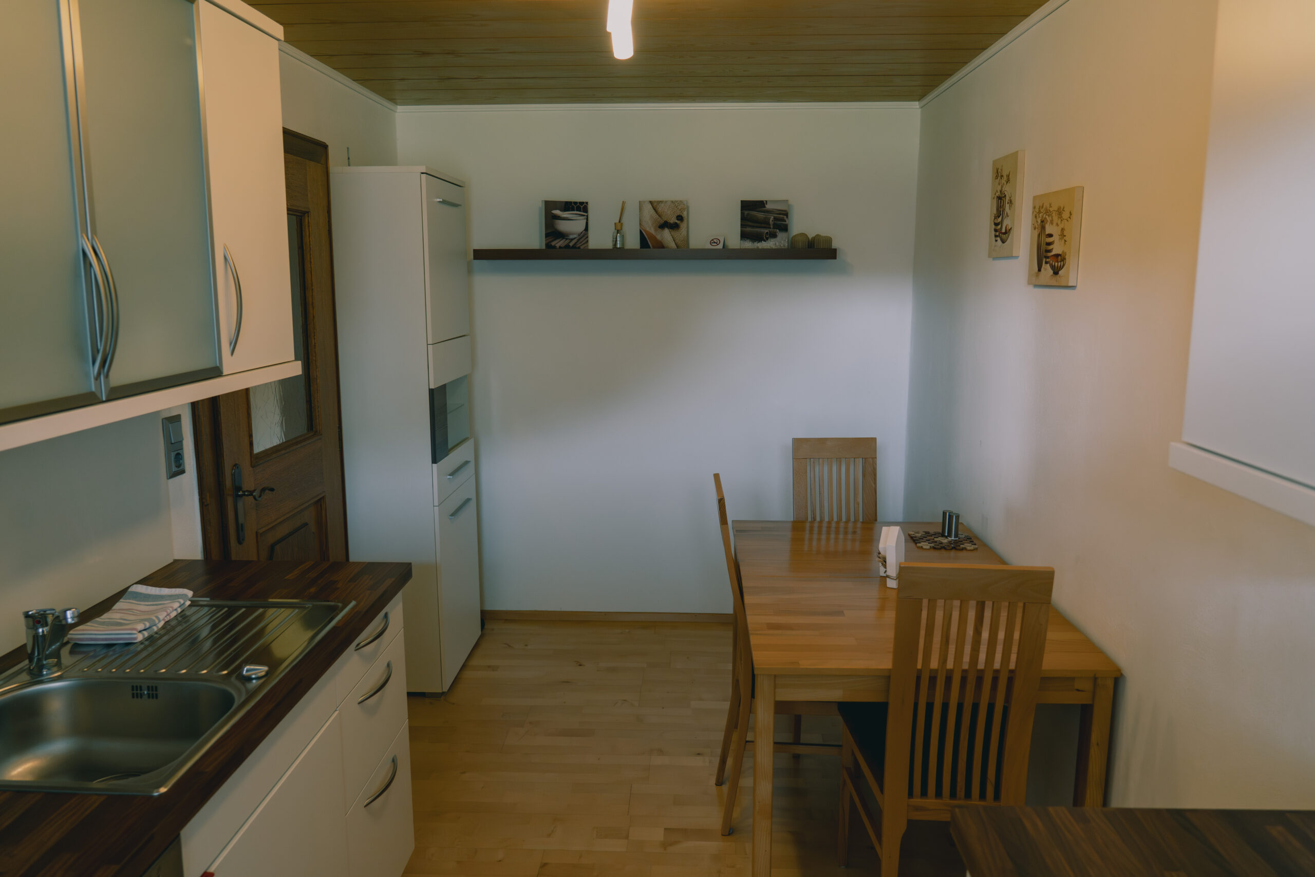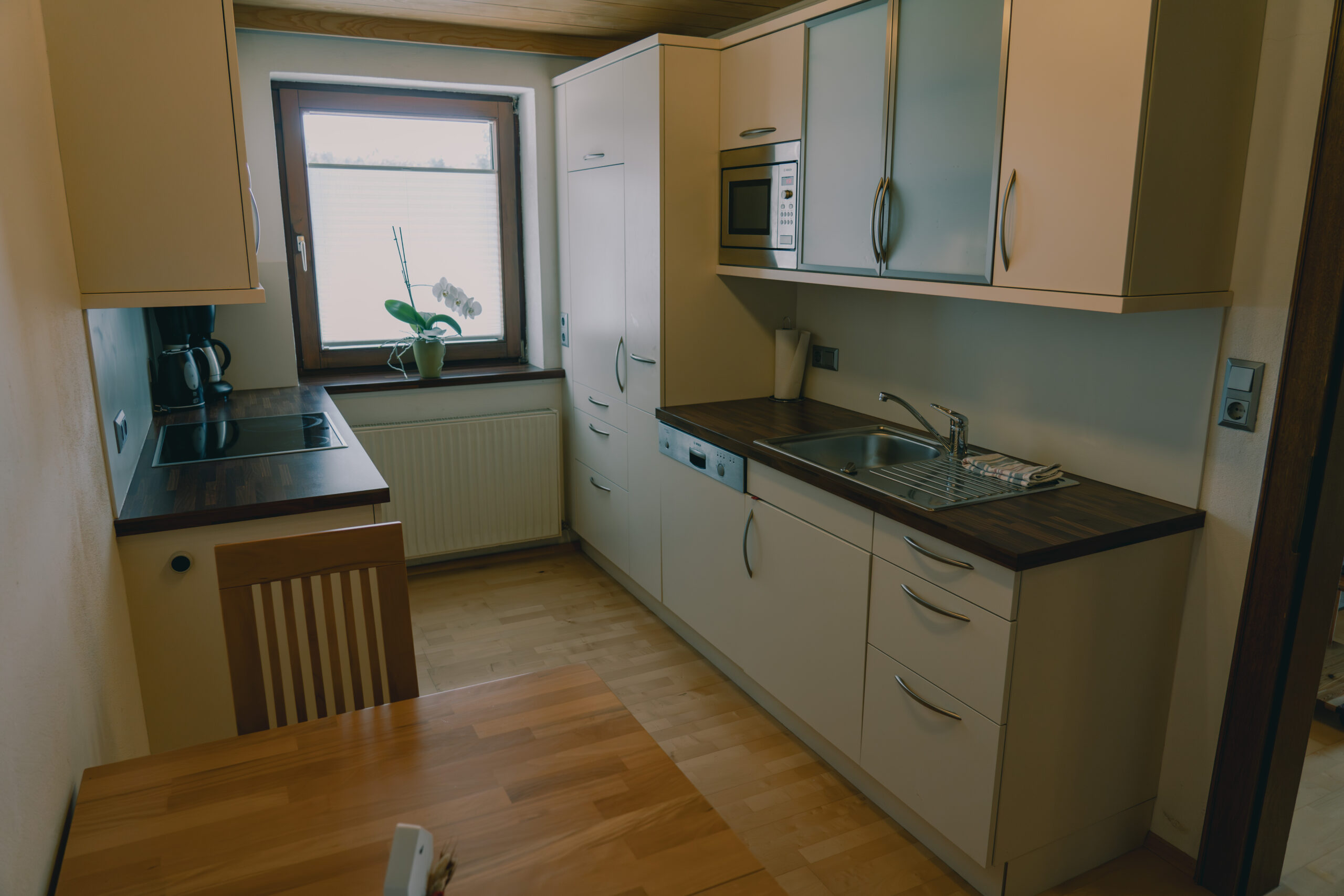 Vollausgestattete Küche mit Geschirrspüler, E-Herd, Kühlschrank, Mikrowelle usw.